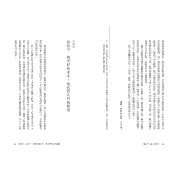 「艾絲特‧沃西基是傳奇教育家與家長。每個人都在問她到底是怎麼教育出這麼優秀的孩子與學生。身為四個孩子的爸,我們家也深深受惠於她的友誼與智慧。終於,沃西基把她的教育哲學寫成書了,充滿她獨有的幽默,以及每個人都會需要的洞見。」──加州州長 紐森(Gavin Newsom)
