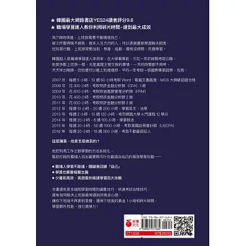 「這是一套專為忙碌的職場工作者所打造的有效學習法,人人都可以從無暇學習到樂在學習,從而改變職涯與人生。」──劉奕酉,知識型自雇者、暢銷書作者