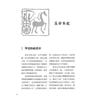 本書就是基於《史記》這些特點而編撰的。《史記》的體例分為本紀、世家、列傳、書、表五種,其中「書」記述了歷代朝章國典、制度沿革,主要寫歷代禮樂制度、天文兵律、社會經濟、河渠地理等各方面內容,學術性較強,本書未加收錄;「表」是用表格來簡列世系、人物和史事,為純粹的歷史沿革,本書也未收錄。