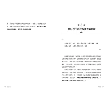 「經過這個為期77天的理財訓練營之後,你將更能體會為什麼在白天做自己喜歡的事,晚上和所愛的人共度時光,是人生最棒的事情。」--蔡至誠 PG財經筆記版主
