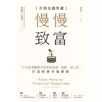 「好好的、慢慢的看過本書的每一章節,實踐它,你可以為自己打下良好的財務基礎,並進一步思考金錢的意義。金錢將成為你邁向快樂人生的助力。」--綠角 財經作家
