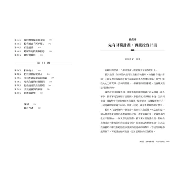 「如果你想跟一位和靄可親的專家就你的財務問題做一些私下的談話,同時又可以從中獲益,而這個人又隨傳隨到而且幾乎不用付費,那麼,你需要的就是這一本書,你也應該跟你所愛的人分享。」──《投資終極戰》(Winning the Loser’s Game)作者查爾斯‧艾利斯(Charles Ellis)。