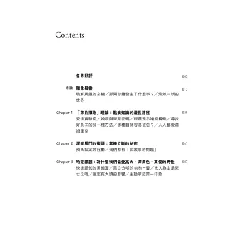 葛拉威爾總是用吸引人的資訊和敘述讓我們目不暇給。如果你相信我的直覺,請買下這本書,你一定會讀得很開心;如果你比較相信我思考後的判斷,還是建議買這本書,你會開心,但也會沮喪、困惑,想要知道更多。──大衛.布魯克斯David Brooks/《紐約時報》專欄作家、《社會性動物》作者