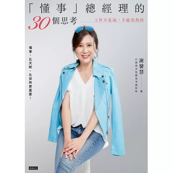 這本書是謝馨慧Abby擔任董事總經理第15年之際,時而從基層做起的工作者同理,時而以主管老闆的角度提醒,直白坦率分享一生受用的懂事哲學和實際建言。