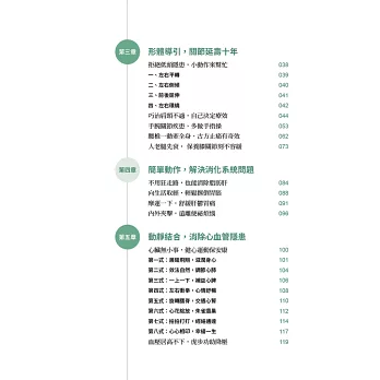 讓你遠離肩頸不適、關節疾患、痠麻疼痛、代謝不良、瘀滯積瘤、頭痛失眠、憂鬱、心血管、糖尿病、消化與神經系統等疾患。