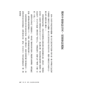 相較市面上的寫作書,多講寫作「套路」和「模組」,偏重「即學速成」。但《讓寫作成為自我精進的武器》卻深談「學習」和「真誠」,側重「穩紮穩打」。這之間沒有誰優誰劣的問題,但在寫作大行其道的當代,我真切希望推廣後者的價值。——歐陽立中 暢銷作家 / 爆文寫作教練