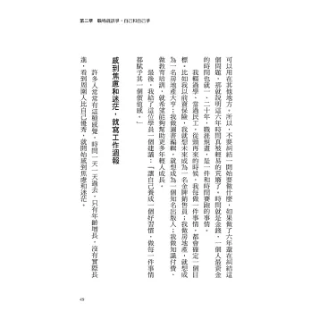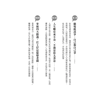誠如作者所提到的,把握現在,其實就是強化核心的能力與價值,在戲棚下站久了,自然會有屬於你的一片天。與其在那裡躊躇滿志、怨天尤人,還不如把時間精力拉回在自己的領域埋首深耕,並且適當的藉由不同機會呈現出來,獲得主管乃至於客戶的青睞。對我而言,這不管在寫作、演講還是主持等領域,都在在證明了它的威力,也帶給我豐厚的回報。