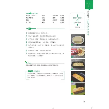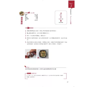 2。收錄多達上百張的菜色食譜及詳細步驟技巧、食材比例,更做TIPS提點,讓初學者STEP BY STEP操作,零失敗做料理。