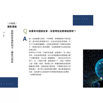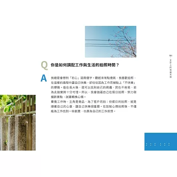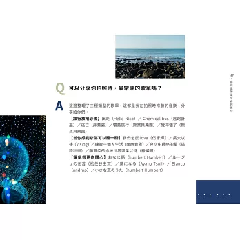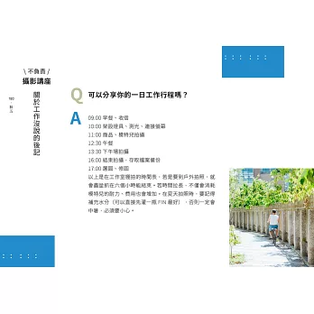■共有34篇短文,並附上「不負責攝影講座」的QA問答,將Instagram定期問答集結,有生活、專業、俏皮、正經等,讓你會更喜歡攝影這件事。