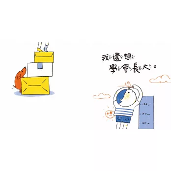 長大以後,有時會想念童年那種信心自動加油滿滿的感覺。初讀故事文字時,想像小男孩直率呼喊著「我會!」,並試著完成每個小目標的樂趣讓我開懷,而最後全家人「一起」的部分,更讓我心中湧入一股暖意。面對孩子跌跌撞撞想把事情完成的表現,爸媽以耐心與溫柔相對,和孩子一起完成、一起學「我會」這件事,是最棒的時刻。