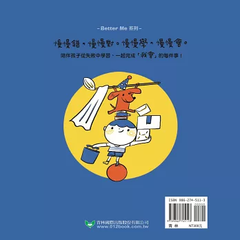 這不是一本教導孩子如何生活自理的書,而是同時給大人和小孩,向上向下發展的心理繪本。當我們還小,什麼事情都還不太會,帶著好奇心模索、嘗試,一開始總是失敗,不如我們所預期。但若我們有開闊的心,願意一再嘗試,不因失敗而跌倒、而失去自信,我們就能會更進步、離目標又更近了一點。然而這也需要父母給予支持與容許犯錯的空間,讓孩子知道「錯了沒有關係,我陪著你再試一次。」這樣的過程比成功還要珍貴,也才是學習中最重要的一部分。Better Me系列以「成為更好的自己」為核心概念,將孩子的生活經驗,以及引人思考的內容融合在簡短的文字中;並以充滿童趣和明亮的畫風,以輕鬆閱讀的方式帶領大人小孩一同成長。
