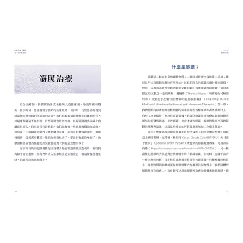 「本書深入簡出的介紹了筋膜的基礎概念與鬆解原理,配合作者豐富的執業經驗,示範各式筋膜放鬆技術的基礎手法與適應情況,對於想踏入這塊領域卻不知從何開始的治療師十分實用。」──台灣動作專家協會秘書長、物理治療臨床博士/劉奕辰