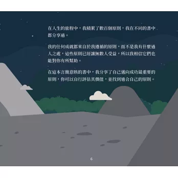 讀這本《成功的原則》,比《原則》更令人餘味無窮,就像看完一齣短劇一樣,充滿精神上的飽足感,也讓我更想多次翻閱它,讓它成為我們自己生命中的成功原則。