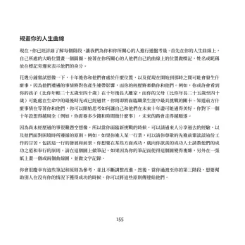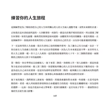 情境重現也可以用在整體的人生旅程上,本書最後的頁面提供了「練習你的人生旅程」,當我們處在人生的交界點上,可能會面臨許多他人曾經有過的「情境重現」。預先思考這些人生的問題,能讓我們面對不確定性、困惑、衝擊……等情況下,做出更好的準備。