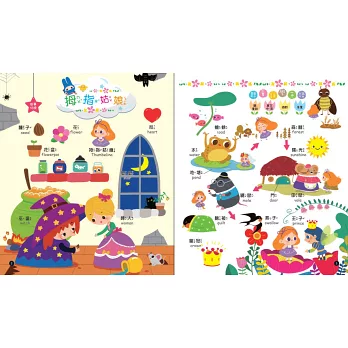 拇指姑娘、醜小鴨、小紅帽……13個耳熟能詳的童話故事,超過200個以上的語詞,採用圖像學習方式,輕鬆提高語詞知識。