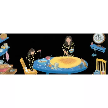 最喜歡小星抬頭跟媽媽咧嘴一笑、承認的模樣,因為,那就像我女兒在對我笑一樣!讓我也想帶孩子走進廚房,一起撒下我們的亮晶晶魔法,做出我們自己的大月餅。