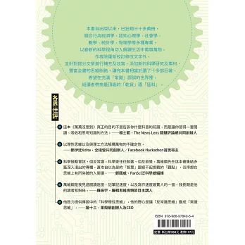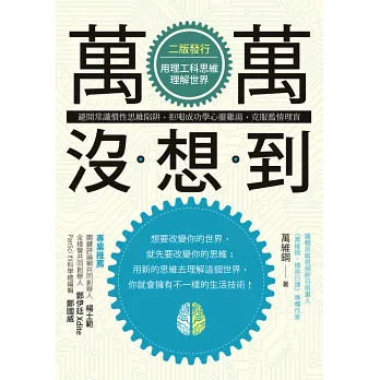 《萬萬沒想到》是我的生平第一本書,它說的是怎麼用科學方法和科學思維去理解這個複雜的現代世界。這本書目前為止在中國大陸賣出將近二十萬冊,讀者給打了高分,獲得了很多獎項,書中內容經常被人引用。大陸之外,它已經在韓國翻譯出版,現在又出了臺灣版,而且英文版也在準備之中。我收到好多讀者的熱情鼓勵,受寵若驚。