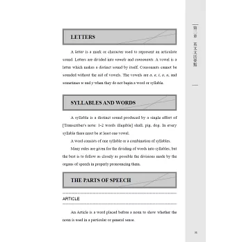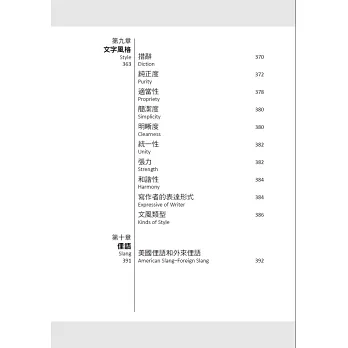 本書不僅介紹了英語口說與寫作的基礎文法,還系統地歸納了應當注意的修辭、標點符號、書信寫作、俚語、行文風格和投稿等具體應用案例,是帶領讀者進入純正英文殿堂的一塊敲門磚。
