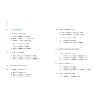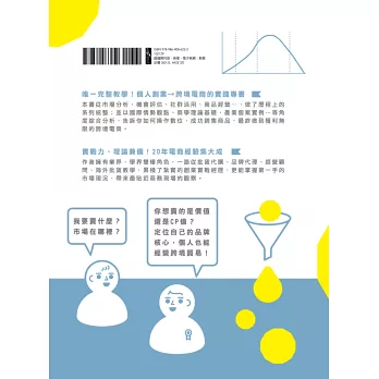 本書從市場分析、機會評估、社群活用、商品經營技巧…,做了實際歷程上的系列統整;並佐以國際情勢觀點、商學理論基礎、產業個案實例…等角度綜合分析,告訴你身處競爭激烈的現實世界,從開始創業到能長久經營,每個階段該掌握哪些實踐重點,最終做到業績無上限的跨境電商。