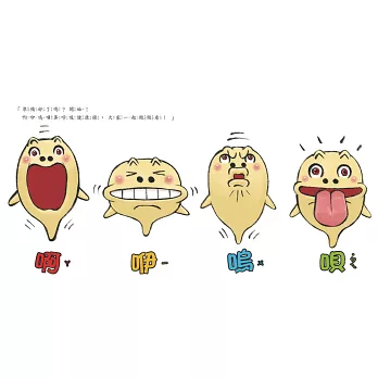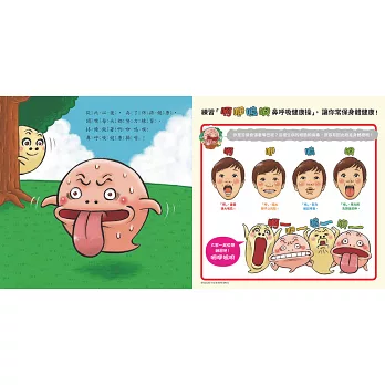 讓我們跟著書中可愛的主角──大鼻和闊嘴一起大喊「啊、咿、嗚、唄」,一天三十次,堅持三個月,就能學會用鼻子呼吸的正確方式,讓舌頭回到正確的位置,常保健康和端正的外觀。