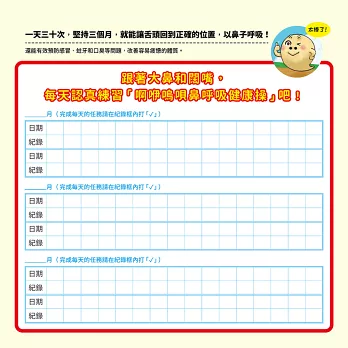 ★隨書附贈「啊咿嗚唄鼻呼吸健康操」彩色練習圖卡&健康紀錄表!