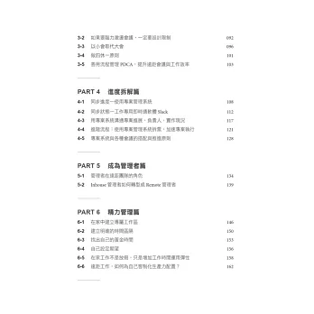 2. 遠距工作不只是用什麼視訊工具的問題,本書將會從「溝通合作」、「任務交接」、「會議方法」到「專案排程」,徹底解析遠距工作如何設計工作流程。