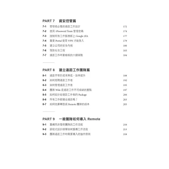 3. 本書將會獨家分析各種實戰問題,遠距工作團隊的「招聘問題」、「資安問題」、「團隊激勵問題」,全部來自作者真實管理經驗,是最頭痛又在市面上找不到解答的遠距難題。