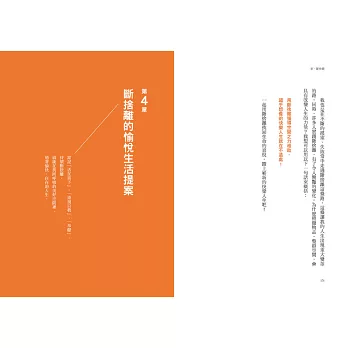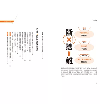 而會讓你感到苦惱的不只是物品,還有金錢、健康、時間、家事、夫妻關係和親子關係。從整理物品開始,不斷練習「斷捨離」,將「不需要、不舒服、不合適」的情緒以及親人強加在你身上的價值觀統統清除掉,才能迎接對你而言真正重要的人事物。