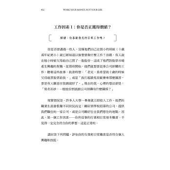 這本書就是教讀者如何同時考慮工作與財務這兩個重要面向。兩者相輔相成,幫助你走上職業生涯與個人財務都滿足與快樂的人生道路。