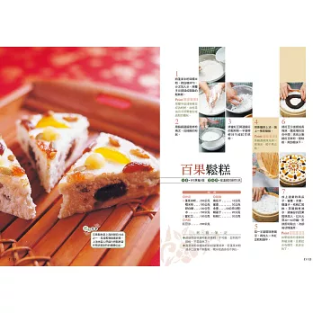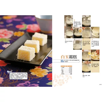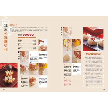 本書特別精選64道從宮廷流傳出來的知名糕點,這些糕點看起來手工細膩,實際上用到的材料容易取得,且作法並不難,書上附上詳細的步驟圖,並由由專業中點老師為您: