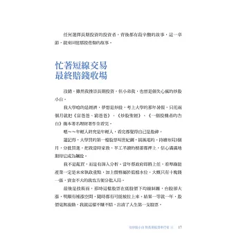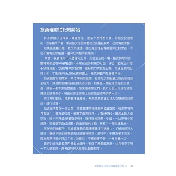 當你在股市路上有疑慮時,不妨再回來翻翻這本書,溫習自己遵守的投資準則,鍛鍊好心智,投資是一輩子的事,心中的投資哲學,特別重要。