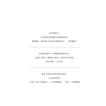能責怪他們嗎?整個時代都被網路臉書籠罩,他們太清楚什麼是讀者反應。快速的資訊流通,各式的文學評論術語與招式,教會他們如何打造預設的護身符。一本一本我拿起又放下。