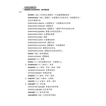 回想距離筆者開闢「法學英文專欄」已逾十五年,這段期間在家人、新學林出版公司優秀編輯團隊和讀者們的支持下,陸續出版了《法學英文辭典》、《法學英文攻略Ⅰ》至《法學英文攻略7》,《法學英文辭典》是專為研讀英美法案件的學生和讀者所設計,將法學生字以群組的方式呈現,讓讀者在學習某個法學生字時可以一次學到所有的形態和重要的法學詞彙,增加學習的效率。《法學英文攻略Ⅰ》至《法學英文攻略7》的內容主要是選編和翻譯關於美國憲法、刑法、刑事訴訟法、律師倫理與著作權法等領域的美國最高法院重要判決,以及編輯重要生字和練習題以供讀者自行學習和測驗。今年筆者選定「美國著作權法」作為《新法學英文攻略—美國最高法院經典案例:著作權法篇》收錄案例的軸心,挑選美國最高法院歷年來所做影響著作權法制度改革的重要判決,以幫助讀者在學習法學英文之同時,也能知悉美國著作權法的重要法理、原則和標準。《新法學英文攻略—美國最高法院經典案例:著作權法篇》收錄案例的標準也涵蓋這幾年我國司法制度變革、著作權法增修和重大社會議題。