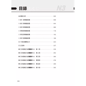 本書不僅擁有6回合大量的模擬聽解試題,更依照JLPT官方公佈的正式考試規格,請專業日籍老師錄製符合N3程度的標準東京腔光碟。透過模擬考的練習,把這6回「聽懂,聽透,聽爛」,來鍛鍊出「日語敏銳耳」!讓您題目一聽完,就知道答案是哪一個了。
