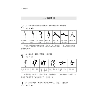 我從小喜愛漢字,1972年從魯實先先生學習文字學,1990年完成博士論文《甲骨文字根研究》,2001年起出版《說文新證》,多年來從事的文字研究,主要重心都放在難度較高的漢字,對常用漢字較少接觸。四年前,新學林毛總希望我能為華語教學的常用漢字寫一本深入淺出的書,我以為這是很有意義的工作,欣然接受。這本書一寫就是四年,如今終於完成了,常用漢字的撰寫,「看似尋常最奇崛,成如容易卻艱辛」,往往越是簡單的漢字,越是令人摸不著頭腦,難以分析。本書力求把每個漢字從起源到發展每一個階段的字形都清楚陳列,構形原理探求明白,相信不但對華語教學有幫助,對中文系的文字學也能提供一些參考。至於還有未撰寫、或還沒完全瞭解的漢字,就只有期待將來了。