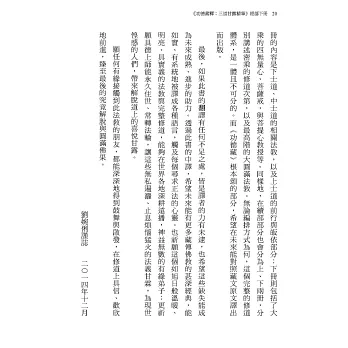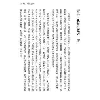《三道甘露精華》不僅長度適中,詳實地闡述了《功德藏》三士道的架構與要義,也完整涵括了經乘與密乘的修道體系。加上細心的註解、附錄與名詞解釋,使這本書幾乎囊括了所有佛法的要點。─譯者劉婉俐,台大外文系畢、北藝大戲劇研究所藝術碩士、輔大比較文學博士,現任華梵大學外文系副教授。從事佛法翻譯多年。