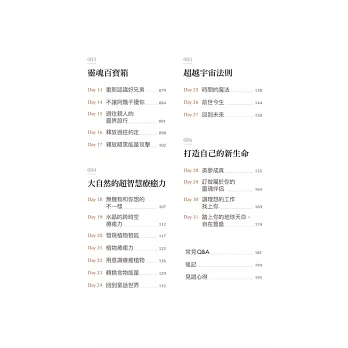 一天帶你看見一個應用,從水晶療癒、動物溝通、植物療癒力、與神性自我連結、與天使及過往親人對話,甚至可以看見未來、調整時間,以及找到自己的神聖時刻等實際應用分享,帶你親眼看見各式奇蹟!