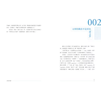 本書寫給剛從事文案、廣告創意工作的朋友,還原一套常被忽略卻無比重要的原則和細節。對於用內容去打動人,改變別人的看法和認知的文字相關工作者,這本書也有極大的幫助。