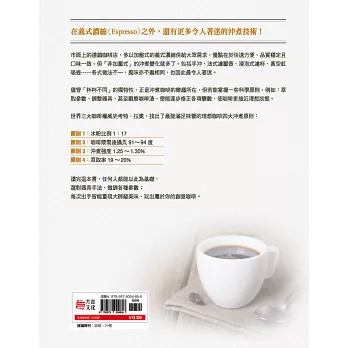 值得注意的是,書裡介紹的是「義式濃縮」(Espresso)之外,