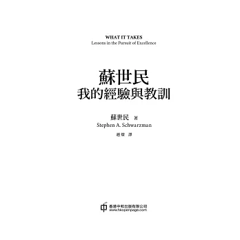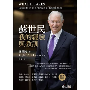 作為黑石集團聯合創始人、董事會主席、CEO,蘇世民(Stephen A. Schwarzman)在這本非常難得的書中,分享了他生涯中的各個階段。從學生時代,到初入華爾街,見證金融世界的精彩與殘酷,再到人生轉軌,艱苦創業,創立及發展起一個叱吒全球的企業。