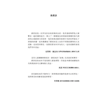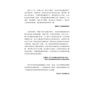書中精彩的金融實戰案例,深厚微妙的投資管理心得,個人和團隊的成功經驗與挫敗教訓,以及對人生喜樂得失的感悟,娓娓道來,令人不忍釋卷。無論是企業家、管理者、專業人士、學生,或是尋求實現個人潛能與價值的大眾讀者,都能從本書中收穫啟發。