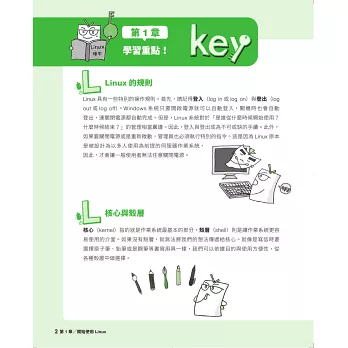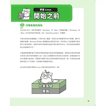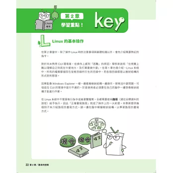 Linux的特色之一,是使用者本身必須確實管理作業系統。由於原本就以輸入指令的管理與操作(CUI環境)為主,即便採用桌面環境,還是時常會需要指令相關的知識。還未習慣前,應該很難消除對輸入指令抱持的抗拒感。這種情況下,本書應該能對鞏固Linux基礎有所幫助。