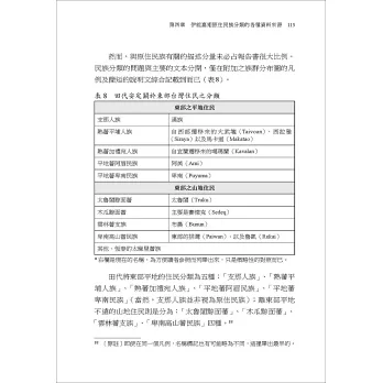 作者笠原政治自選二十年來陸續發表與民族分類有關的論文,依日治時代先行者進行研究調查的時間為縱軸,追溯原住民族全體分類軌跡的議題,構成這本以研究史與民族分類為主題的專書。本書從原住民族研究先驅「三傑」:伊能嘉矩、森丑之助、鳥居龍藏等先行者縱橫全島的台灣踏查採集,到《台灣原住民族系統所屬之研究》這部學術著作之解析,以探討原住民族分類的由來與經過,盼能引起更多讀者對台灣原住民族研究領域的興趣,並且對日治時代的資料有正確認識與解讀。