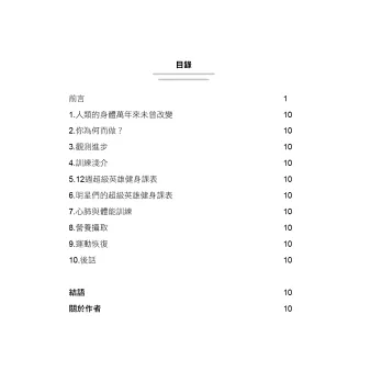 由好萊塢教練和前海軍海豹突擊隊隊員杜菲蓋佛(Duffy Gaver)編寫的培訓健身書,講述了克里斯·普瑞特(Chris Pratt)和布萊德·彼特(Brad Pitt)等電影明星親身實踐,打造出螢幕前體格的真實鍛煉方法。