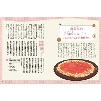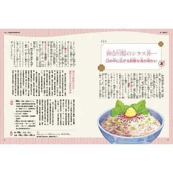 臭得媲美臭豆腐的滋賀鲋壽司、湯頭黑不見底的富山黑拉麵、粉紅甜滋滋的伊勢崎文字燒……由這些充滿個性的鄉土料理或B級美食中,能一窺當地人習性。本書有別於一般旅遊美食導引,不追當紅店家,而是精選各縣最具地域性、對台灣人而言相對陌生的一道,解說食材與料理法的特殊性,並介紹料理源起及道地吃法。用眼睛享受美食的同時,能更深入認識日本各地不同的風土物產與生活樣貌。