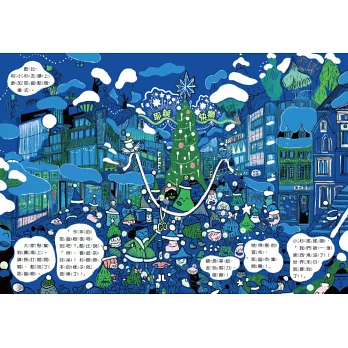 ▍封面採特殊色五色印刷,作者說為了滿足心中的小孩,為了呈現出兒時記憶中充滿期待又神奇魔力的耶誕節,特別選用閃亮亮的綠色背景,節慶感十足!