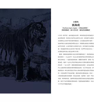 巨獸威震八方,來自波斯森林深處,裏海邊綠蔭長青的險峻原始陸地。牠的名字既是詛咒也是懇求,意為:迅如箭,狂如世界湍急之最的底格里斯河(Tigris),老虎(Tiger)便是得名於此。