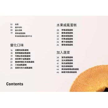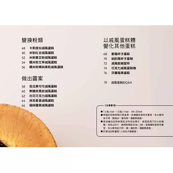 從基礎的無油戚風蛋糕製作進化到各式各樣的口味並加入水果蔬菜,也通通不失敗!