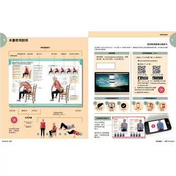 全書90個伸展運動和變化版,專業圖解搭配45支QR CODE影片示範,手機、電腦都能看。