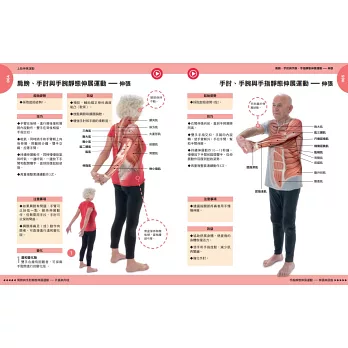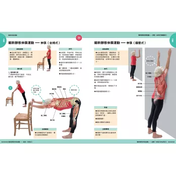 將人體分成頸部、上肢、軀幹、髖部和下肢5大部位設計伸展動作,由簡至複雜,跟著程序圖解做,不易受傷。